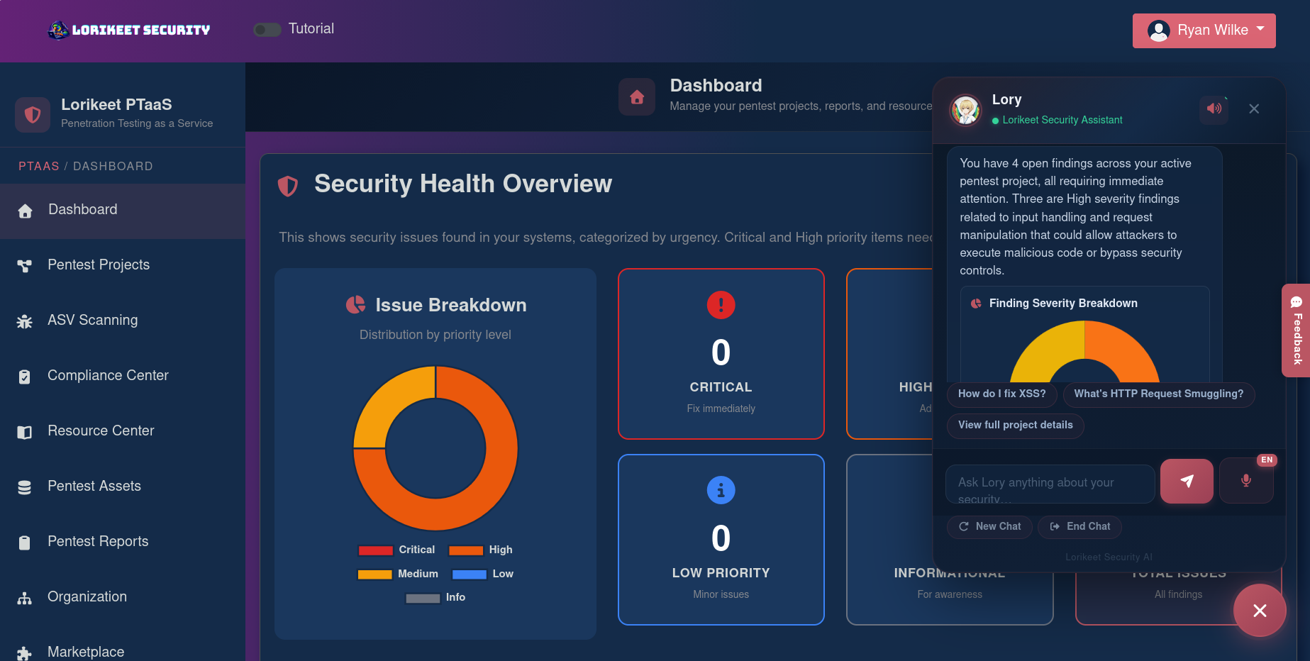 - Operational Efficiency: Lorikeet Security streamlines workflows by providing a real-time portal for tracking engagements and interacting with their AI assistant, Lory, which is trained on 2,000 vulnerability entries to offer instant insights. This means AI leaders can reduce the time spent on manual security reviews from weeks to days, allowing teams to focus on innovation rather than fire-fighting. In my 15 years, I've noted that this level of integration minimizes disruptions, turning what was once a siloed process into a seamless part of AI development cycles.